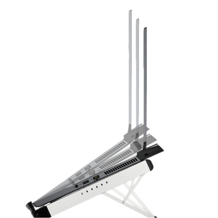 ఈ ల్యాప్టాప్ స్టాండ్ దాని మృదువైన స్లైడింగ్ బేరింగ్ డిజైన్తో త్వరిత మరియు అతుకులు లేని ఒక-సెకండ్ ప్రారంభాన్ని అందిస్తుంది. మన్నికైన మరియు అందమైన అల్యూమినియం మిశ్రమంతో రూపొందించబడింది, ఇది సొగసైన రూపాన్ని కలిగి ఉంది. ఆరు సర్దుబాటు ఎత్తులతో, మీరు మీ అవసరాలకు సరిపోయే కోణాన్ని అనుకూలీకరించవచ్చు మరియు బలమైన వెనుక అల్యూమినియం అల్లాయ్ త్రిభుజాకార మద్దతు స్థిరత్వాన్ని నిర్ధారిస్తుంది, టైపింగ్ చలించకుండా చేస్తుంది. అడ్జస్టబుల్ బ్యాఫిల్ వివిధ మందం కలిగిన ల్యాప్టాప్లను కలిగి ఉంటుంది మరియు మీరు రెండు సొగసైన రంగు ఎంపికల నుండి ఎంచుకోవచ్చు: నలుపు మరియు తెలుపు.